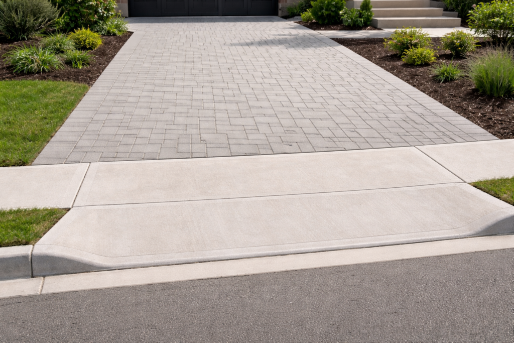 A curb cut is the portion of the curb that’s lowered and reinforced so your vehicle can legally enter and exit your property. Without it, you’re not allowed to drive across the sidewalk. We’ve had plenty of homeowners call us thinking they can just “shave the curb down”. It doesn’t work that way here.